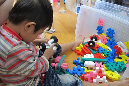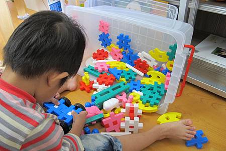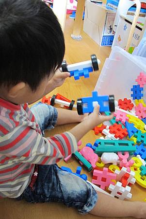 這款積木的優點是,輕盈,大。適合小小孩玩。不過,缺點是裡面沒有附示範圖片,不知道可以拼哪些東西。而且,車車一整台我拼不出來耶,好像無法很穩固固定住連接的積木,小孩就自己發揮創意,想拼什麼自己拼吧~這款可能要再查看看誰是達人,我再來問看看有誰會,快來教教我吧。